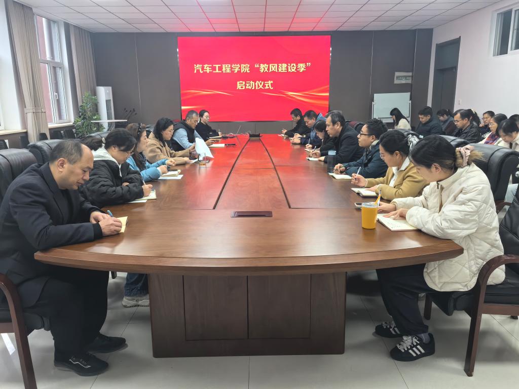 为深入贯彻落实习近平总书记关于教育的重要论述,积极响应学校 “教风建设季” 活动号召,11 月 6 日下午,汽车工程学院在 8215 会议室举行“教风建设季”启动仪式,开展教育家精神、《新时代高校教师职业行为十项准则》及教学管理规范文件等专题学习反思活动。汽车工程学院全体教职工参加了活动,此次会议由张玉芝院长主持。